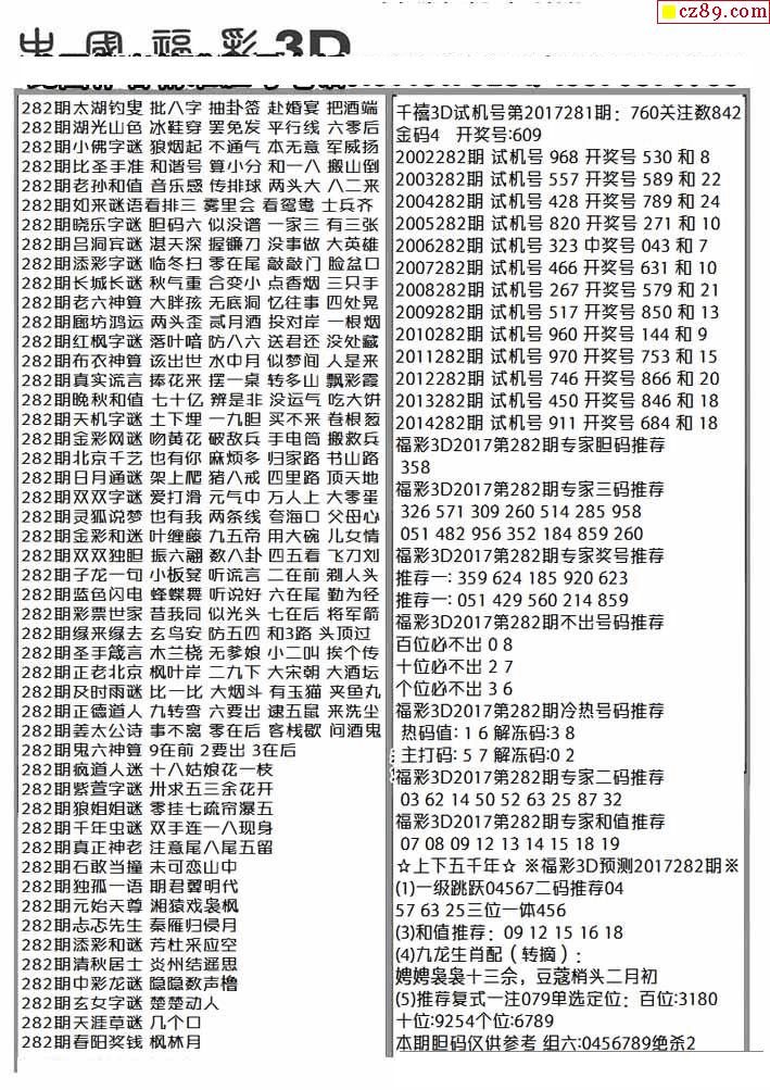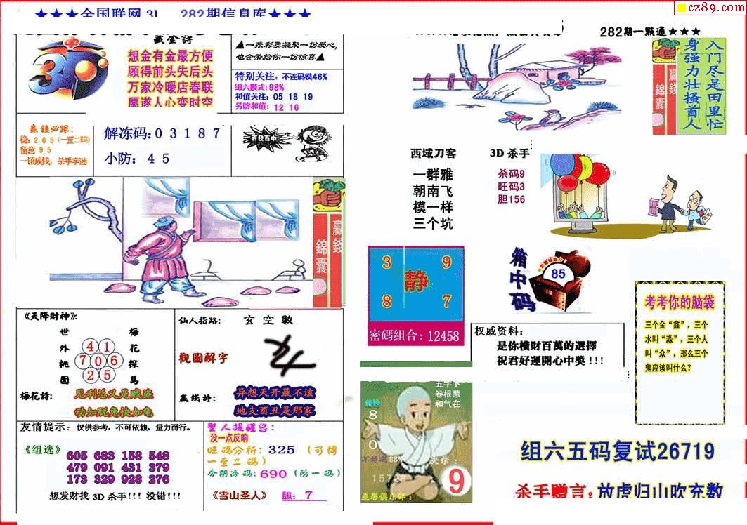> 杀手+鑫马快报+字迷汇总25年282期3d图谜