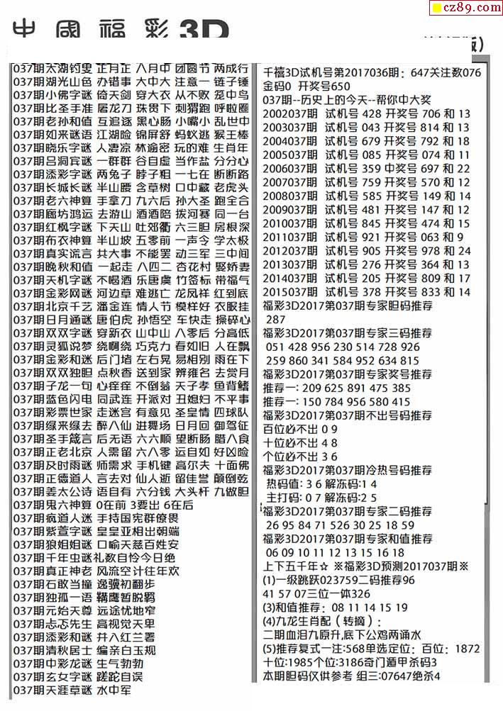 > 杀手+鑫马快报+字迷汇总26年037期3d图谜
