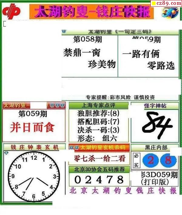 钱庄快报2026059期3d图谜