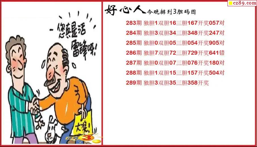 > 2025289期P3好心人胆码图