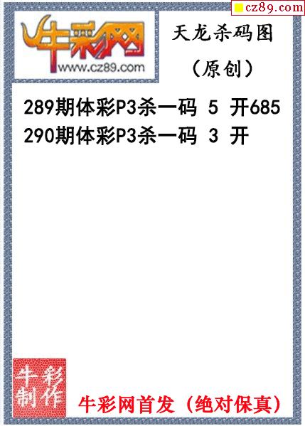 天龙杀码290期体彩P3图谜(原创)